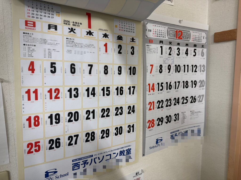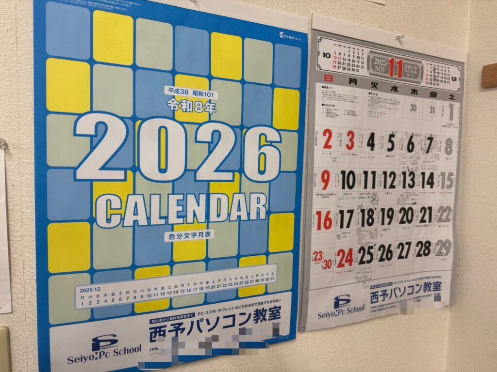 2026教室カレンダー 2025年12月4日 最終更新日時 : 2025年12月4日 seiyopc 毎年暮れになると生徒様に感謝の気持ちを込めて差し上げている教室のカレンダー。今年も山口県の業者様にお願いして納品いただきました。今年は10月の頭に発注を出して10月末に届いたので11月にはほとんどの生徒様にお配りできました。 今年は少しカラーにしてみました。 まだ少し残っていますので年賀状やパソコンのレッスンにお越しいただいた生徒様へお渡ししますね。お気軽にカレンダー下さいと声をかけてください。 Follow me! 共有: Facebook で共有するにはクリックしてください (新しいウィンドウで開きます) Facebook クリックして X で共有 (新しいウィンドウで開きます) X FacebookX